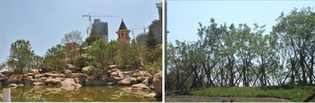 在這一排壯觀配套建筑的前方,是一片茂密蔥蘢的寬闊綠化帶,沿濱河東路一直向南延伸。這就是太原星河灣在紅線以外打造的據說是“最美一段”的市政綠帶。可以看到林帶中有各種高大豐富的喬木、低矮錯落的灌木,與大量顏色各異的地植花卉,一同織就了一條濃密旖旎的綠色長虹。遠遠望去,這條寬闊林帶,與周邊完善市政綠化、身后星河灣園林隱隱綻放的美景、以及政府未來在此片區重點打造的數個大型公園,匯積成一整片連綿的綠帶林海。據說星河灣以自身園林標準打造的這條市政綠帶,種植很多與園林中同樣、遷移自全國各地的珍貴樹木。這不禁使人想象真正成品開放后的星河灣園林將又是一番怎樣的摸樣。