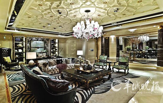 據悉,在上海星河灣樓王樣板房中,僅客廳一面藝術天花,就有多達上千條邊線,繪制完成需要耗費5位技術大師半年的時間,其中每一條弧線都經過純手工打磨而成,就連天花鑲嵌的小方塊,也完全是手工制作。在另一套樓王樣板房中的“天幕穹頂”天花,共鋪貼628張金箔,每張金箔都經過五道工藝,歷經數日磨礪方才鋪就。而這些并不單是樣板房標準,還是交樓標準。