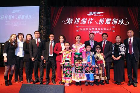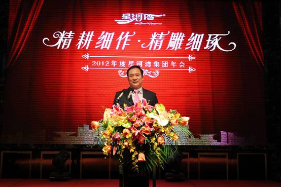 圖說:在2012年度星河灣集團年會上,黃文仔董事長進行春節講話