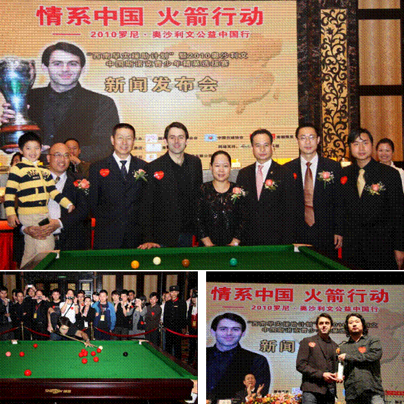 奧 沙利文中國之行,在入住唯一指定酒店——星河灣酒店的那一刻起,意義就豐富起來。廣州星河灣,是奧沙利文中國之行的首個目的地,也是2010年奧沙利文中 國青少年斯諾克精英選拔賽新聞發布會官方指定場所,在這里,奧沙利文舉行了莊重的開球儀式,以此作為關愛中國青年一代“火箭”的成長、尋找下一個“火箭” 的起點。