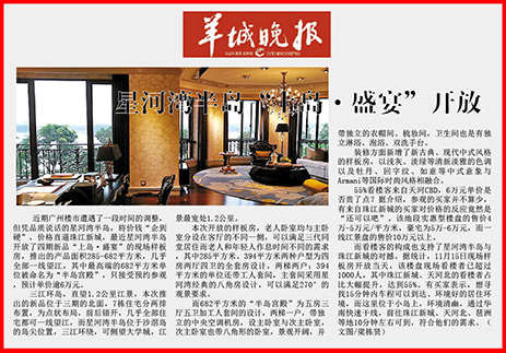 《羊城晚報(bào)》的焦點(diǎn)則放在星河灣半島絕佳的區(qū)位價(jià)值,并在報(bào)道中直接將星河灣半島和珠江新城做比較,用對(duì)撼來形容星河灣半島城市半島價(jià)值對(duì)珠江新城居住人群的影響。
