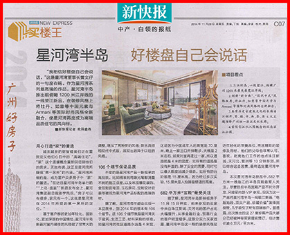 星河灣半島此次推出的682平米半島宮殿,吸引了《廣州日?qǐng)?bào)》、《南方都市報(bào)》等媒體的聚焦。各大媒體對(duì)星河灣半島的三大裝修風(fēng)格產(chǎn)品極為推崇,《廣州日?qǐng)?bào)》更是在樓市版做了大幅報(bào)道。