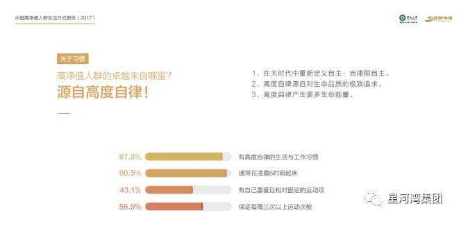 這份報(bào)告有多重磅?它是國(guó)內(nèi)首次針對(duì)高凈值人群的生活方式專業(yè)科研報(bào)告,是暨南大學(xué)生活方式研究院首次產(chǎn)學(xué)研結(jié)合的科研成果,也是星河灣生活學(xué)院首次深入?yún)⑴c、聯(lián)合發(fā)布的學(xué)術(shù)研究報(bào)告。