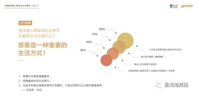 更為重要的是,他們普遍具備社會(huì)責(zé)任感,將慈善視為重要的生活方式之一。75%的高凈值人群曾經(jīng)捐款捐物,一半以上加入過(guò)公益性社會(huì)組織,30%長(zhǎng)期堅(jiān)持做公益,或在某個(gè)公益組織長(zhǎng)期任職。