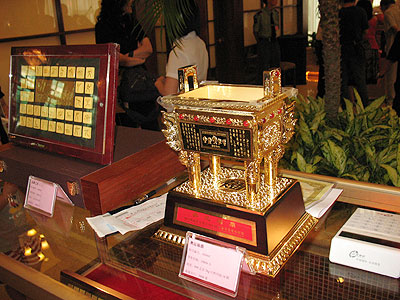 6月7、8日,由中國銀行與星河灣地產合辦的“奧運珍藏品大型社區展銷活動”廣州星河灣站,在廣州星河灣銷售中心現場展開。活動當天,廣州星河灣銷售中心吸引了大批業主前來觀賞。據了解,當天參展的飾品有純金鳥巢擺件、奧運金璽,以及價值93萬元一套的奧運主場館紀念金章等。