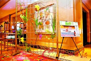 走進典雅大氣的活動現場,首先映入眼簾的便是由廣州日報“時尚薈”和“游天下”等部分優美版面所組成的海報組群,被放大了的版面錯落有致地陳列在展廳四周,耳邊不時傳來輕靈的音樂讓人徹底沉靜心靈。與用報紙做成的海報相映成趣的,是一扇扇頗有古風雅韻的藝術裝置——由竹子拼搭的架子仿若畫紙,上面漸次點綴的枯藤、花束和綠植則構成了完美的畫作,不復雜,細看之下又頗有意境。